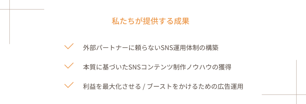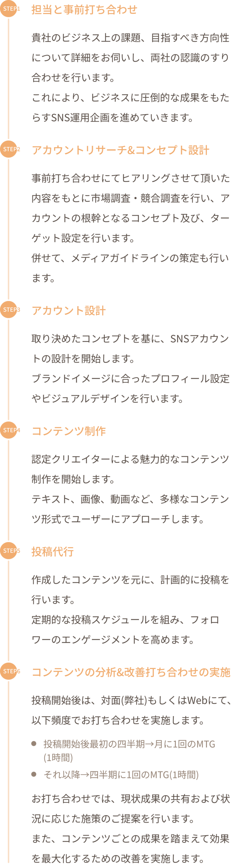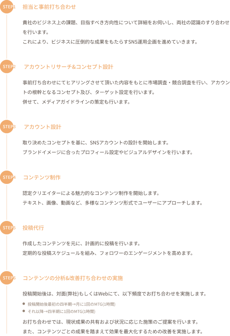 SNS Strategy & In-House Creation SNS Strategy & In-House Creation 事業成功を得るには 正しいコンテンツマーケティングを実践すること 圧倒的な成果を提供いたします 社内でこのような問題は起きていませんか? 社内にクリエーション事業部を立てることで SNS事業の更なる発展をサポートいたします! 社内にクリエーション事業部を立てることで SNS事業の更なる発展をサポートいたします! SNSコンテンツマーケティングで『あなたの理想の未来』を手に入れましょう。 SNSコンテンツマーケティングで『あなたの理想の未来』を手に入れましょう。 もし現状が理想の未来に繋がっていないと感じるなら、 今すぐ計画を見直すべきです。 もし現状が理想の未来に繋がっていないと 感じるなら、今すぐ計画を見直すべきです。 ご相談いただいた企業の98%が、 SNSマーケティングに取り組んでいるものの効果を実感していません。 SNSマーケティングは、ただ 「投稿を増やす」「伸びている動画を真似る」「フォロワー数を増やす」 だけでは成功しません。 必要なのは、緻密な戦略と設計、そして高品質なコンテンツです。 SNSマーケティングは、ただ 「投稿を増やす」「伸びている動画を真似る」「フォロワー数を増やす」 だけでは成功しません。 必要なのは、緻密な戦略と設計、そして高品質なコンテンツです。 多くの企業が持つ潜在力を活かしきれていないのは非常に勿体ないことです。 あなたの企業にしか作れない独自のコンテンツを、 私たちと一緒に創り上げていきましょう。 私たちが提供する成果 あなたに最適な提案をお届けします! SNSマーケティング戦略の構築、設計、実行に関して 専任のコンサルタントがサポートいたします。 SNSマーケティングを内製化するためのトレーニングも行い、 貴社のビジネスに圧倒的な成果をもたらすSNSマーケティング企画を進めていきます。 SNSマーケティングを内製化するためのトレーニングも行い、 貴社のビジネスに圧倒的な成果をもたらすSNSマーケティング企画を進めていきます。 Contact us → クリエーション内製化 自社でSNS運用&コンテンツ制作、ブランディングを内製化するための教育等まで幅広く対応し、 貴社のビジネスに圧倒的成果をもたらすコンテンツマーケティング企画を進めていきます。 自社でSNS運用&コンテンツ制作、ブランディングを内製化するための教育等まで幅広く対応し、 貴社のビジネスに圧倒的成果をもたらすコンテンツマーケティング企画を進めていきます。 FLOW SNS運用一括代行サービス 社内リソースが不足し、SNS運用が難しいお客様向けに、アカウントリサーチ、コンセプト設計、コンテンツ制作、投稿代行まで、専任コンサルタントが一括で運用を代行します。 部分的な代行も可能ですので、詳しくはお問い合わせください。 社内リソースが不足し、SNS運用が難しいお客様向けに、アカウントリサーチ、コンセプト設計、コンテンツ制作、投稿代行まで、専任コンサルタントが一括で運用を代行します。 部分的な代行も可能ですので、詳しくはお問い合わせください。 FLOW 不明点はご遠慮なく下記よりお問い合わせくださいませ 不明点はご遠慮なく下記よりお問い合わせくださいませ Contact us → BLOG タイトル4 タイトル3 タイトル2 Load More More 事業成功を得るには 正しいコンテンツマーケティングを実践すること 圧倒的な成果を提供いたします 社内でこのような問題は起きていませんか? 社内にクリエーション事業部を立てることで SNS事業の更なる発展をサポートいたします! 社内にクリエーション事業部を立てることで SNS事業の更なる発展をサポートいたします! SNSコンテンツマーケティングで『あなたの理想の未来』を手に入れましょう。 SNSコンテンツマーケティングで『あなたの理想の未来』を手に入れましょう。 もし現状が理想の未来に繋がっていないと感じるなら、 今すぐ計画を見直すべきです。 もし現状が理想の未来に繋がっていないと 感じるなら、今すぐ計画を見直すべきです。 ご相談いただいた企業の98%が、 SNSマーケティングに取り組んでいるものの効果を実感していません。 SNSマーケティングは、ただ 「投稿を増やす」「伸びている動画を真似る」「フォロワー数を増やす」 だけでは成功しません。 必要なのは、緻密な戦略と設計、そして高品質なコンテンツです。 SNSマーケティングは、ただ 「投稿を増やす」「伸びている動画を真似る」「フォロワー数を増やす」 だけでは成功しません。 必要なのは、緻密な戦略と設計、そして高品質なコンテンツです。 多くの企業が持つ潜在力を活かしきれていないのは非常に勿体ないことです。 あなたの企業にしか作れない独自のコンテンツを、 私たちと一緒に創り上げていきましょう。 私たちが提供する成果 あなたに最適な提案をお届けします! SNSマーケティング戦略の構築、設計、実行に関して 専任のコンサルタントがサポートいたします。 SNSマーケティングを内製化するためのトレーニ